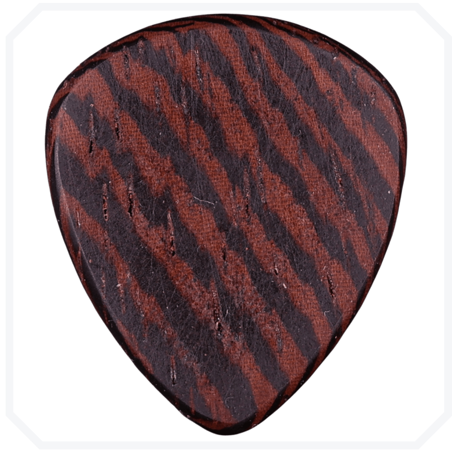 Orta Afrika’nın balta girmemiş ormanlarından, doğanın en ritmik ve en “gürültülü” imzalarından biri olan Wenge, Zen Guitar & Picks koleksiyonunun perkülatif gücünü temsil eder. Özellikle üst segment bas gitar saplarında ve akustik gövdelerde “tonal bir omurga” olarak kullanılan bu ağaç; siyah ile derin kahverengi arasındaki o meşhur “keklik tüyü” desenleriyle sadece görsel bir ağırlık sunmaz, aynı zamanda enstrümanınızın sesine hacimli bir otorite katar.